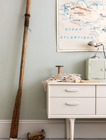 Dieses silbern schimmernde Blau ist ursprünglich der hellste Blauton aus der ersten Farrow & Ball-Farbkollektion. In dunkleren Räumen wie beispielsweise dem Flur wirkt Light Blue etwas silbriger – vor allem wenn die übrigen Räume in kühleren, neutralen Grautönen gehalten sind. In hellen Räumen erzeugt Light Blue eine friedliche und beruhigende Wirkung, besonders in Verbindung mit mit einem kühlen Grau wie Blackened.